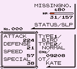 之前好像也有聽過MISSINGNO.,可是沒看過,基於實事求是的精神(怎麼不用在其他地方= =),就去網路上查了一下。然後,看到紅藍英文版有出現MISSINGNO.的問題,正好以前有玩過紅版英文,紀錄也還留著,所以就試了一下:
